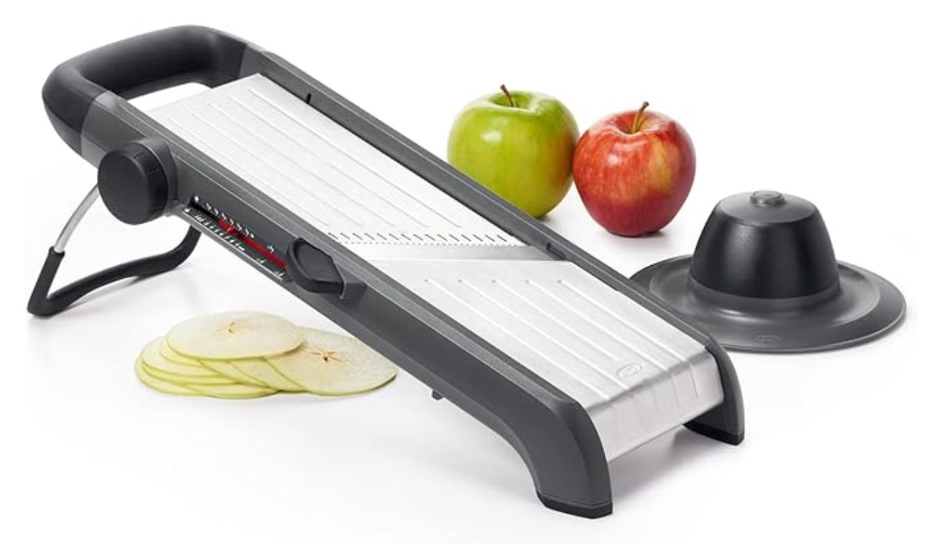 OXO Chef’s mandoline slicer 2.0. If you have some kind of awesome state of the art food processor that perfectly slices vegetables to paper thin width, or produces regular julienne cuts, never mind this caveman suggestion and skip this one. Just one thing….it is way less cumbersome, faster to put to use, and easier to wash than fancy robot machines, so it can be practical to have both. A mandoline slicer is an awesome tool, and every decent kitchen should have one to be honest. Just be very careful with your fingers. It also cuts those really well too. No, I’m not speaking from experience or anything. No I, professional cook, did not almost have to go to the hospital last Christmas while slicing potatoes for my Gratin dauphinois. Seriously, don’t drink wine while using this.