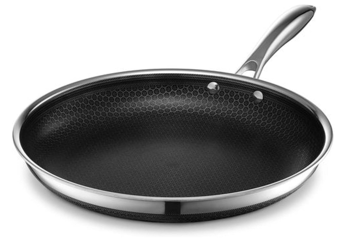 HexClad 12-Inch Hybrid Nonstick Frying Pan If you’re not on a budget invest in HexClad. Everyone swears by them. Dishwasher, oven, and metal utensil safe, it browns meats like a stainless steel skillet, and cooks eggs like a true nonstick pan. It’s also super easy to clean. It’s two pans in one. Compatible with all cooktops. Comes with a lifetime guarantee.