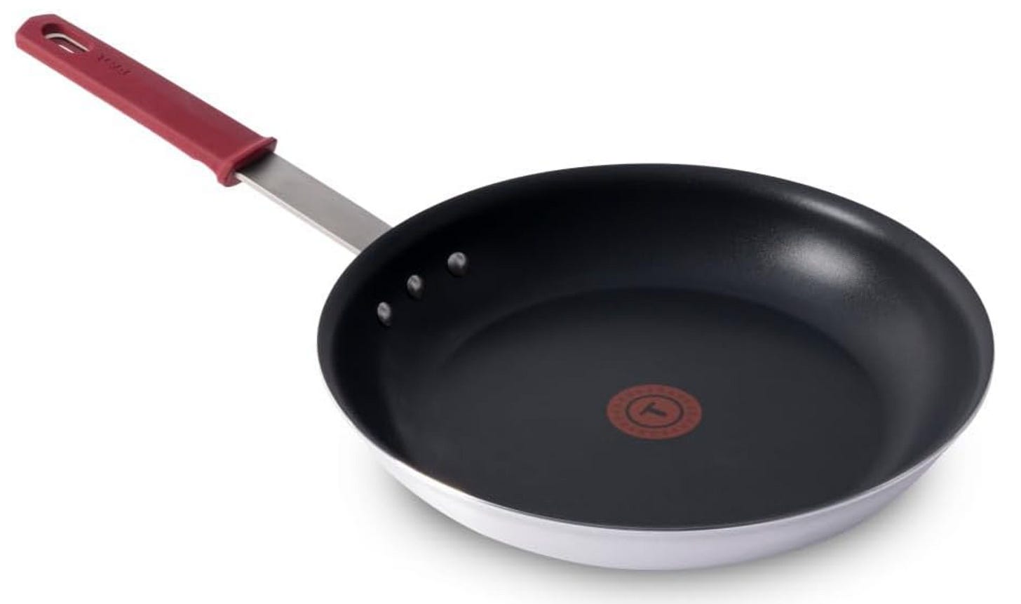 T-fal 12 Inch Nonstick Fry Pan. If you’re on a budget, go for this option. Nonstick pans have come a long way. This one is oven broiler safe up to 400F if you remove the silicone sleeve over the handle. Compatible with all cooktops.