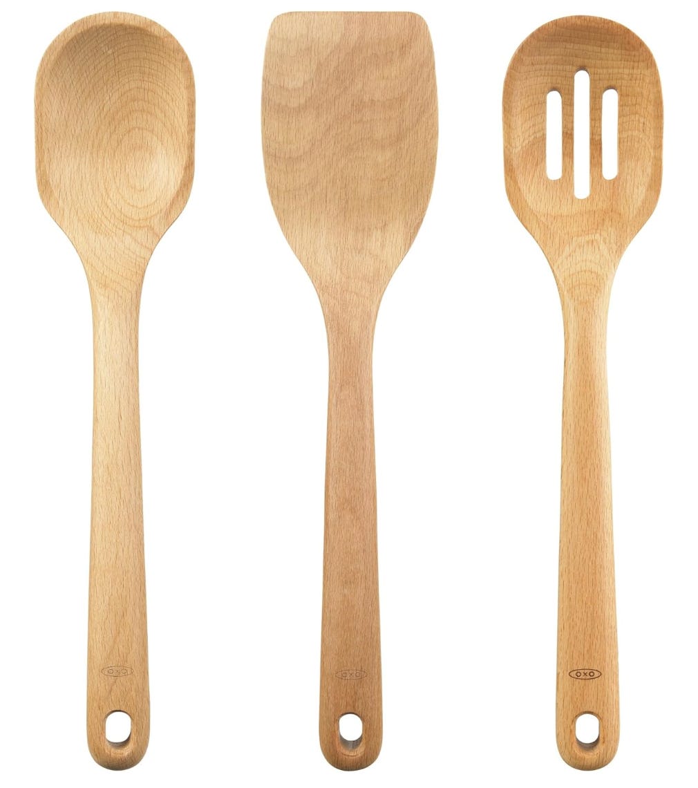 OXO Wooden Utensil Set. I still like to use wooden utensils like these for stirring big pots of soup or tomato sauce.