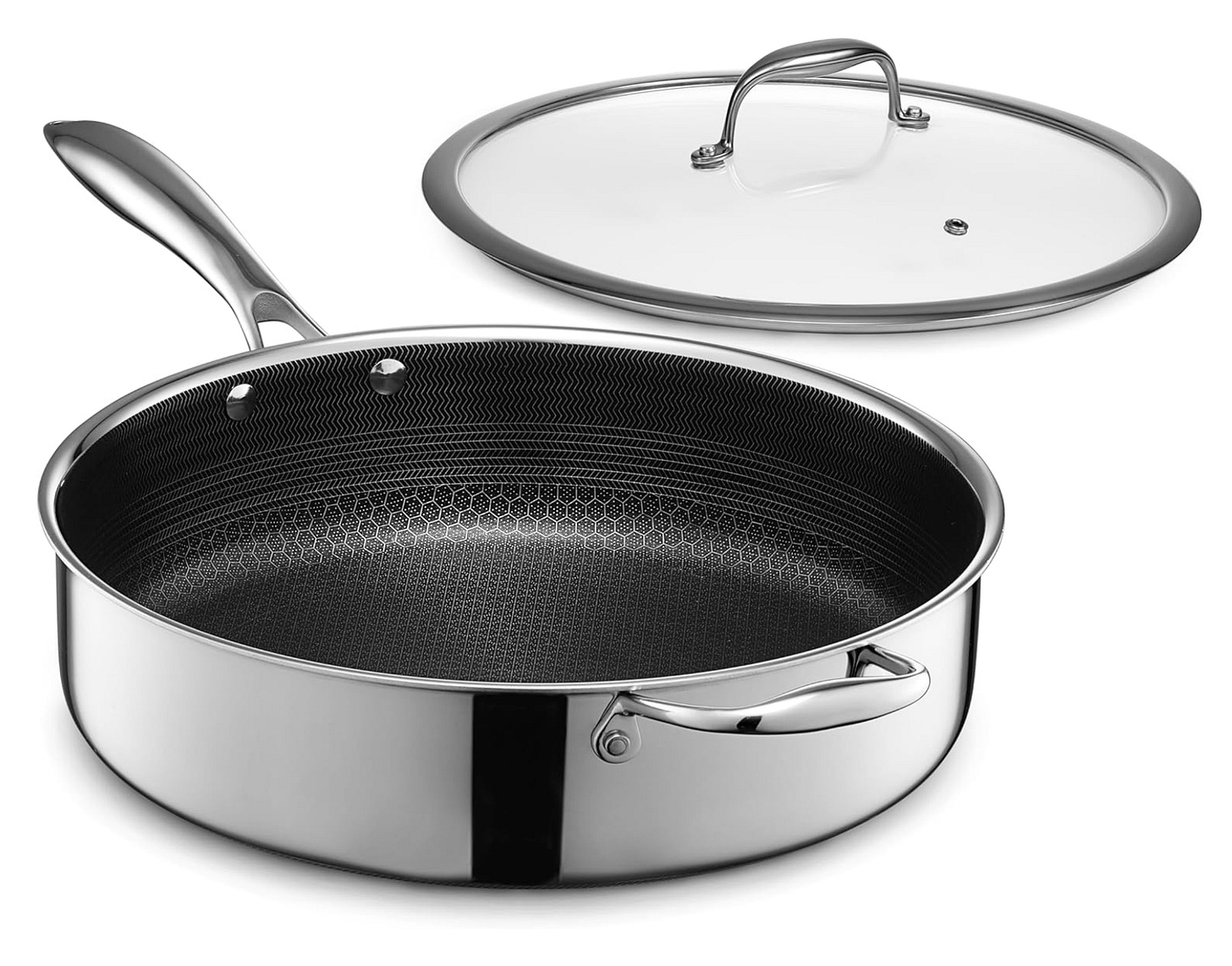HexClad Hybrid Nonstick 5.5 Qt Deep Sauté Pan with Lid. If you’re not on a budget go with a HexClad deep sauté pan for all the reasons mentioned in the previous two items. Compatible with all cooktops.