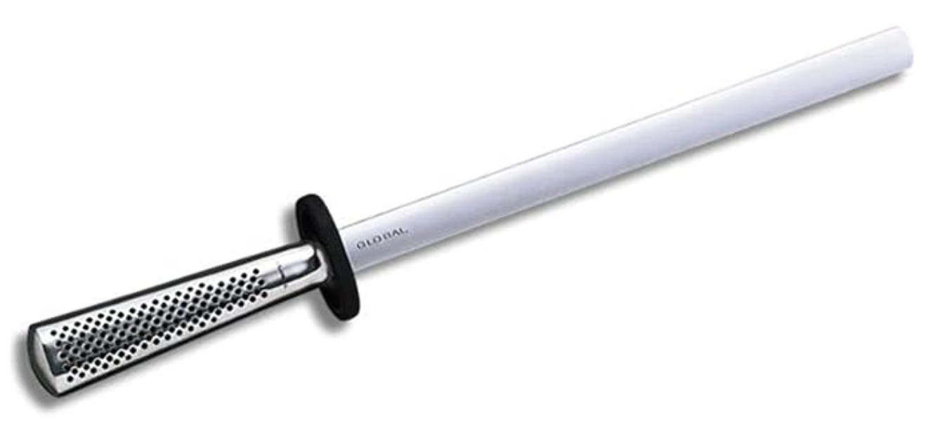 Global 10 inch diamond sharpening steel. This is a pretty pricey sharpening steel, but hear me out. Yes it costs more than the knives themselves, but I rarely have to take my knives to a sharpening stone (or a professional) thanks to this baby. It’s covered in diamond dust, so really just a few passes several times a day when I am cooking in professional kitchens keeps all my knives razor sharp. I pretty much only sharpen my knives on a whetstone a couple times a year, which is pretty amazing considering how much I use my knives every day as a professional cook.